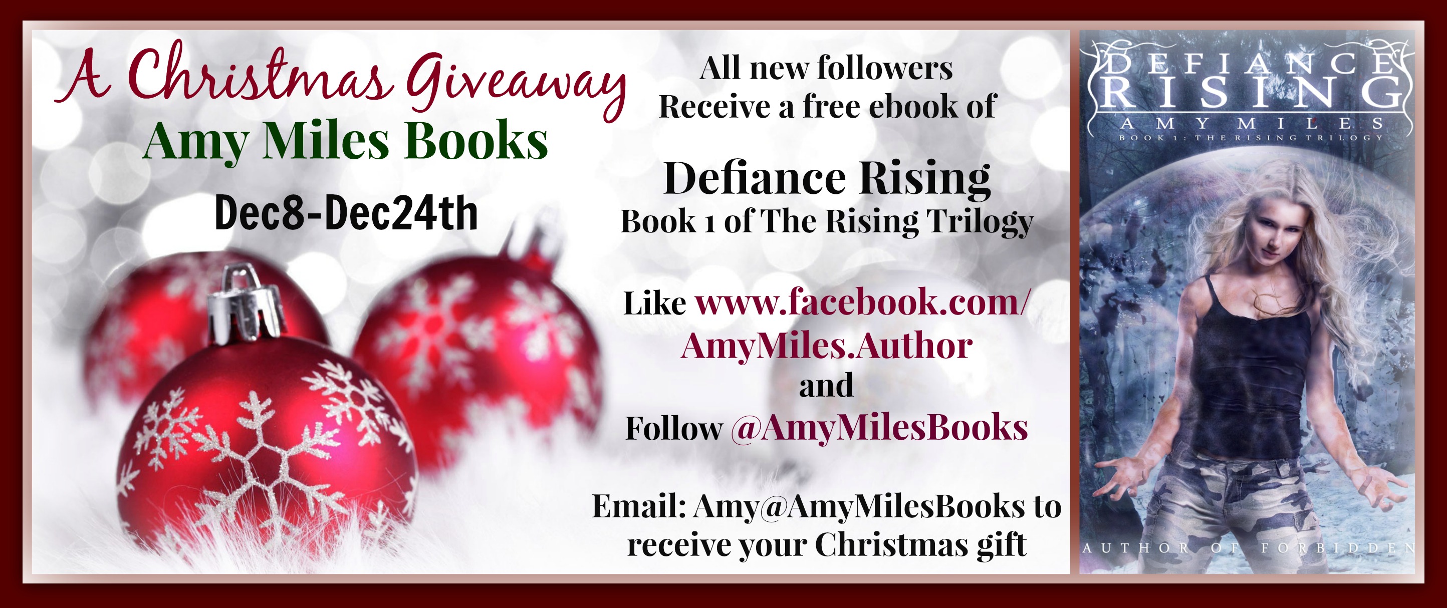 Like my Facebook page, follow me on twitter and then email me at Amy@amymilesbooks.com