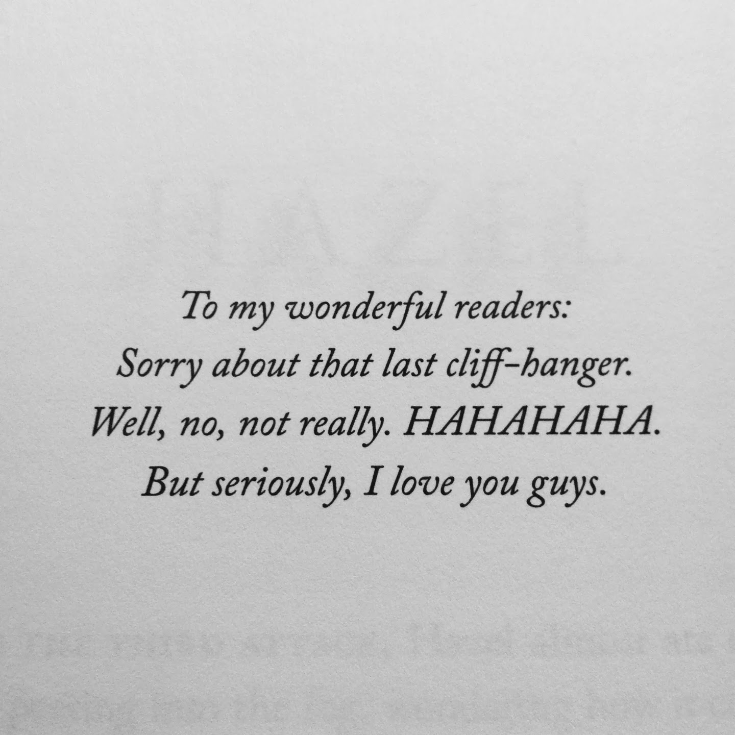 This is why I like cliff hangers. Those moments of utter shock when a reader reaches the end only to find